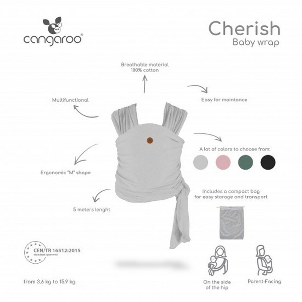 Ο βρεφικός μάρσιπος Cherish της εταιρείας Cangaroo είναι φτιαγμένος από ελαφρύ ελαστικό ύφασμα, κάνοντας τον την ιδανική επιλογή για να κρατήσετε το νεογέννητο σας κοντά σας.
