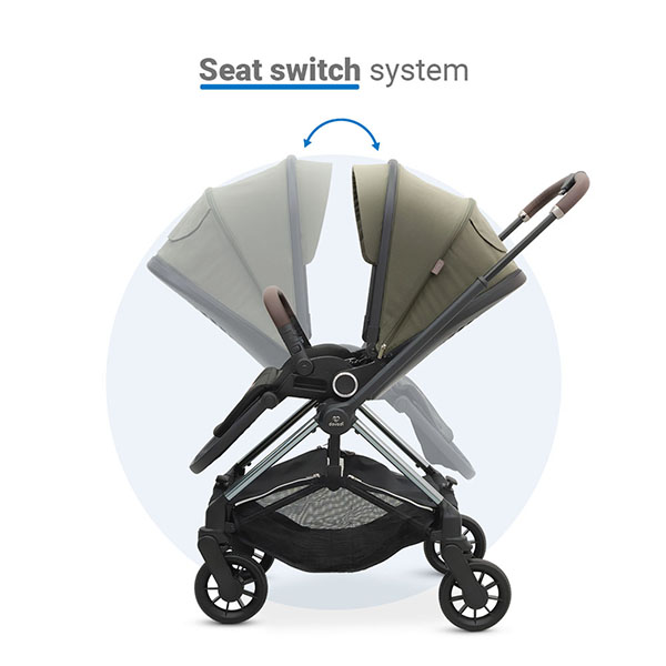 Αναστρέψιμο κάθισμα: Επιλέξτε ανάμεσα στη θέση με φορά προς εσάς ή προς τα εμπρός, ανάλογα με την ηλικία και τη διάθεση του μωρού σας. Θέλετε να αλληλεπιδράσετε μαζί του; Ή μήπως προτιμά να εξερευνά τον κόσμο γύρω του; Το Mio σας δίνει την επιλογή!