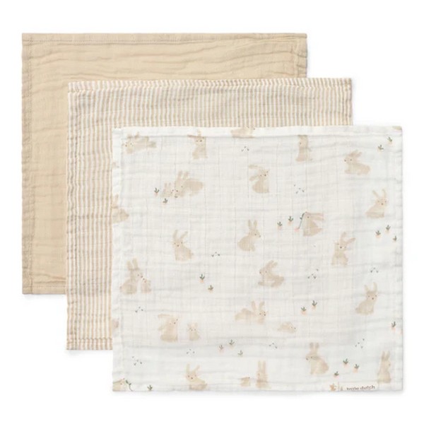 Σετ 3 πανάκια προσώπου από μουσελίνα Little Dutch Baby Bunny