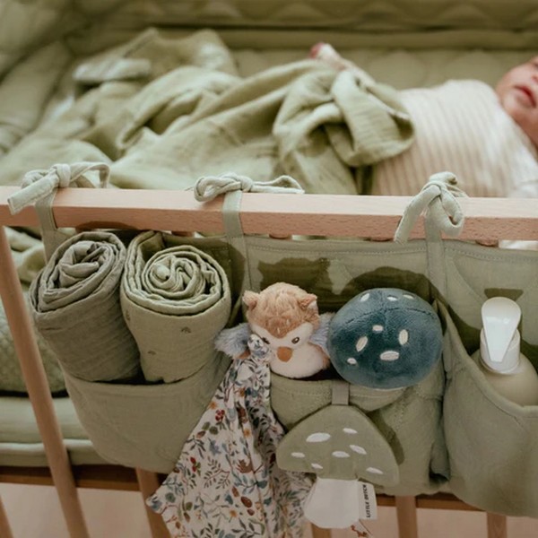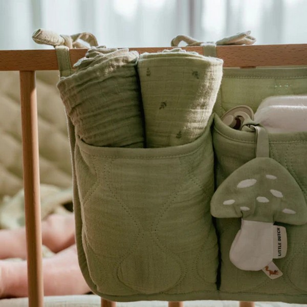 Φτιαγμένες από 100% οργανικό βαμβάκι, διαθέτουν τρεις ευρύχωρες τσέπες, ιδανικές για να αποθηκεύσετε πιπίλες, σαλιάρες, πάνες, μωρομάντηλα, παιχνίδια και άλλα – δηλαδή όλα όσα χρειάζεστε για τη φροντίδα του μικρού σας. Προσαρμόζονται εύκολα στο πάρκο, στην αλλαξιέρα ή στον τοίχο, με τα πρακτικά σχοινάκια.