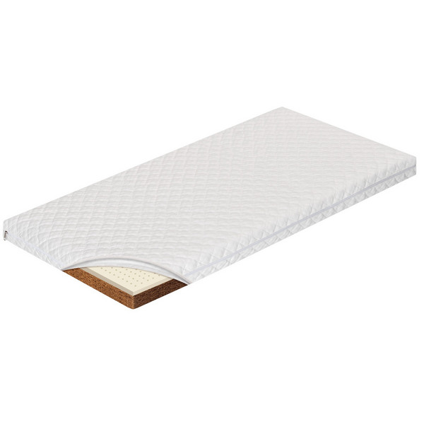 Ένα στρώμα με δύο πλευρές! Μία μαλακή πλευρά από φυσικό latex και μία πιο επίπεδη πλευρά από 100% φυσικό ελαστικοποιημένο κοκκοφοίνικα για τη σωστή ανάπτυξη της σπονδυλοδεσίας του παιδιού σας. Ο ελαστικοποιημένος κοκκοφοίνικας είναι ένα 100% φυσικό προϊόν μεγάλης αντοχής που εξασφαλίζει τη διατήρηση της σωστής θερμοκρασίας. Το latex προσφέρει άνεση και μεγάλη ευκαμψία.