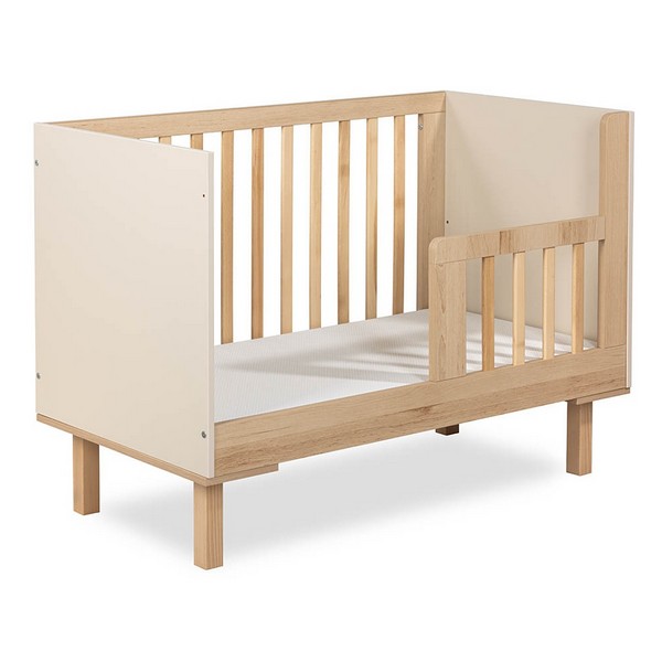 Στην τελευταία φάση μπορούμε να αφαιρέσουμε τη μία πλευρά και να προσαρμόσουμε το προστατευτικό κάγκελο (περιλαμβάνεται στην τιμή). Με τον τρόπο αυτό θα μετατρέψουμε το βρεφικό κρεβάτι σε κρεβάτι καναπεδάκι.