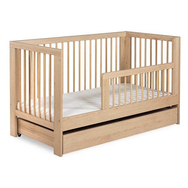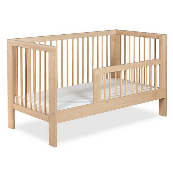 Στην τελευταία φάση μπορούμε να αφαιρέσουμε τη μία πλευρά και να προσαρμόσουμε το προστατευτικό κάγκελο. Με τον τρόπο αυτό θα μετατρέψουμε το βρεφικό κρεβάτι σε κρεβάτι καναπεδάκι.