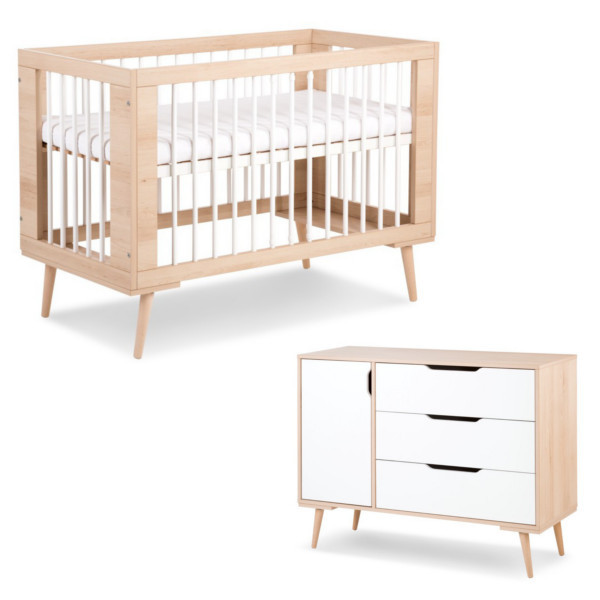 Τα τρία αφαιρούμενα κάγκελα, τα τρία επίπεδα ρύθμισης στρώματος ανάλογα με την ηλικία και την ανάπτυξη του παιδιού και τα τεράστια πόδια πεύκου εξασφαλίζουν την άνεση και την ασφάλεια του μικρού σας. Η τάβλα του κρεβατιού είναι από μασίφ οξιά.