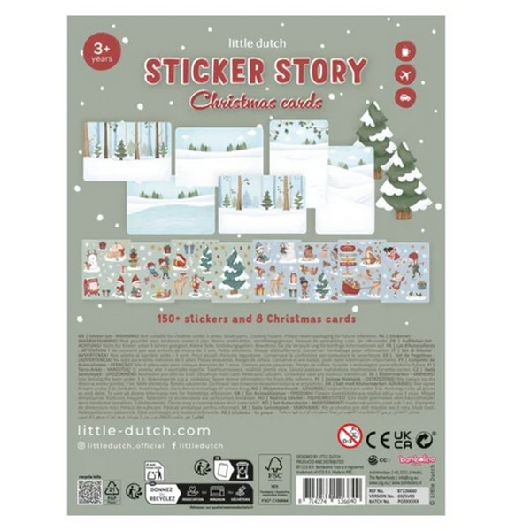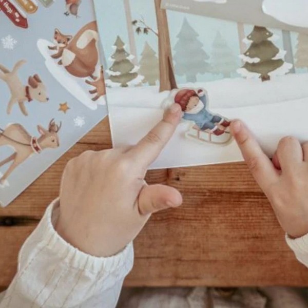 Με χαρακτήρες όπως ο Άγιος Βασίλης, χιονάνθρωποι, τάρανδοι και πολύχρωμα δώρα, τα παιδιά μπορούν να μεταμορφώσουν απλές κάρτες σε χαρούμενες, προσωπικές σκηνές. Τα αυτοκόλλητα συνδυάζονται εύκολα με τις καρτ-ποστάλ για να δημιουργηθούν αληθινά χειμωνιάτικα έργα τέχνης.