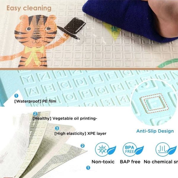 Κάθε πλευρά του χαλιού έχει διαφορετική παράσταση με χαριτωμένα μοτίβα και ελκυστικά χρώματα που θα λατρέψει το παιδί σας.