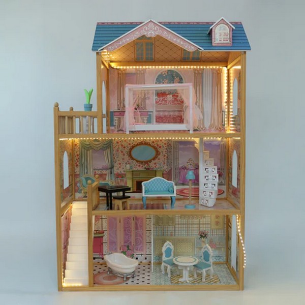 Ανακαλύψτε το υπέροχο ξύλινο κουκλόσπιτο Emily με φωτάκια LED – την τέλεια επιλογή για να ενισχύσετε τη φαντασία και τη δημιουργικότητα του παιδιού σας!