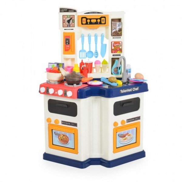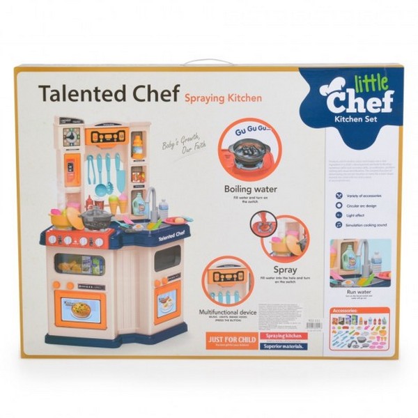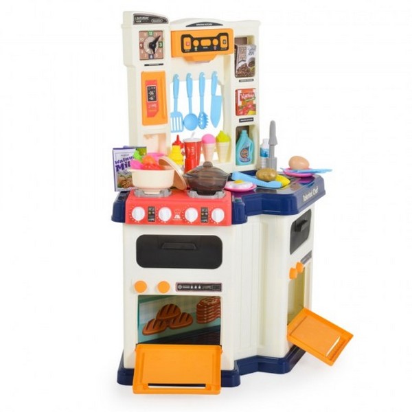 Παιδική κουζίνα με 67 τεμάχια αξεσουάρ, πραγματικό τρεχούμενο νερό από τον νεροχύτη και ατμό από τις εστίες μαγειρέματος.