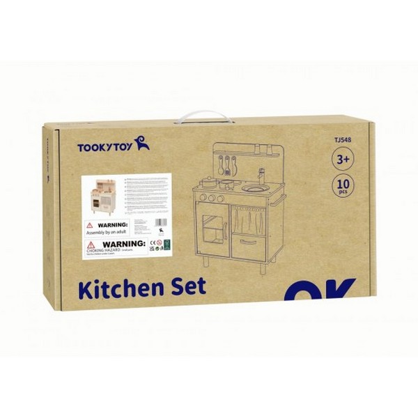 Παιδική ξύλινη κουζίνα με ξύλινα σκεύη.
