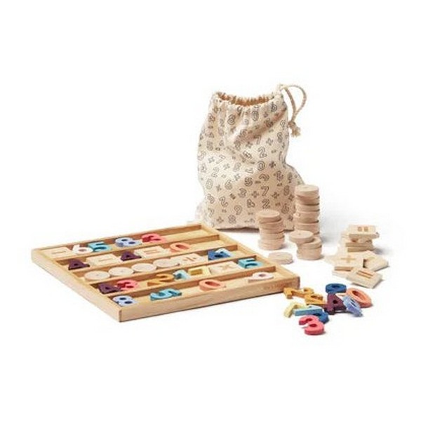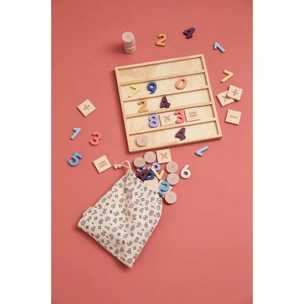 Περιέχει: Ένα δίσκο μέτρησης, υφασμάτινο τσαντάκι, 25 πιόνια, 30 αριθμούς από το μηδέν έως το εννέα και 15 αριθμητικά σύμβολα.