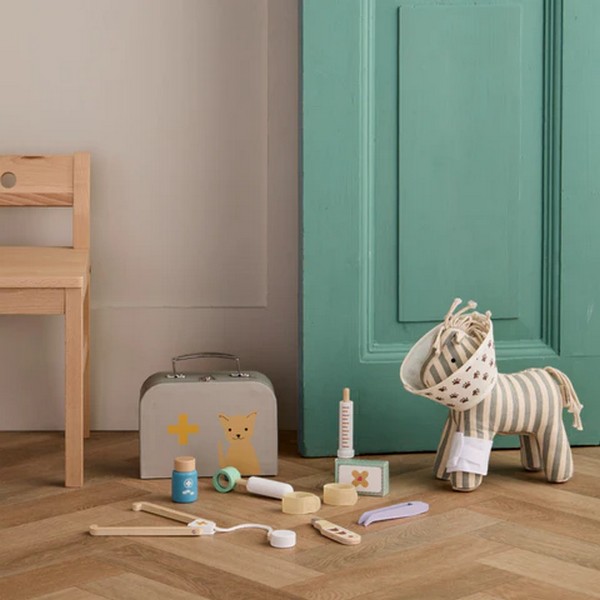 Αυτό το ξύλινο σετ παιχνιδιού κτηνίατρος είναι τέλειο για παιδιά που αγαπούν να φροντίζουν τα λούτρινα ζωάκια τους!