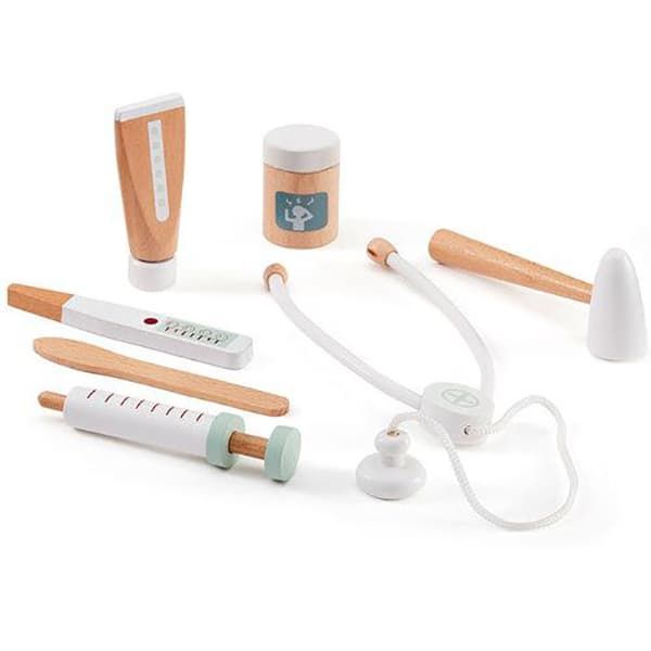 Περιλαμβάνει στηθοσκόπιο, θερμόμετρο, ραβδιά γλώσσας, κουτί χαπιών, αλοιφή, σύριγγα και αντανακλαστικό σφυρί.
