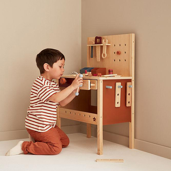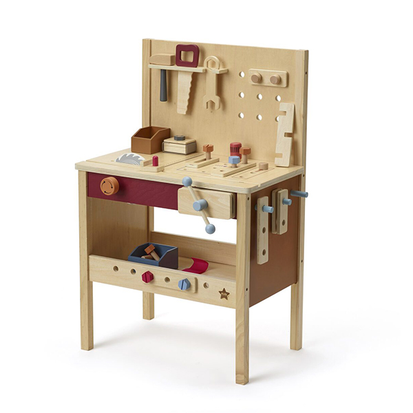 Αυτός ο παιδικός πάγκος εργαλείων είναι εξαιρετικός για όσους αγαπούν την ξυλουργική. Έτσι τώρα ο μικρός ξυλουργός μπορεί να επισκευάσει ή να συναρμολογήσει τα πάντα. Ο πάγκος έχει τρύπες όπου μπορείτε να στερεώσετε βίδες, καρφιά και πλάκες κατασκευής. Υπάρχει επίσης ένα δισκοπρίονο που περιστρέφεται όταν γυρίζετε το πόμολο. Σίγουρα, κάτι που ταιριάζει σε όσους σχεδιάζουν τεράστια οικοδομικά έργα. Και μην ξεχνάτε. Όταν όλα είναι έτοιμα, μπορείτε να σφίξετε την κατασκευή σας και να γυαλίσετε το αριστούργημα σας!