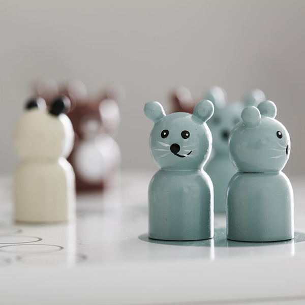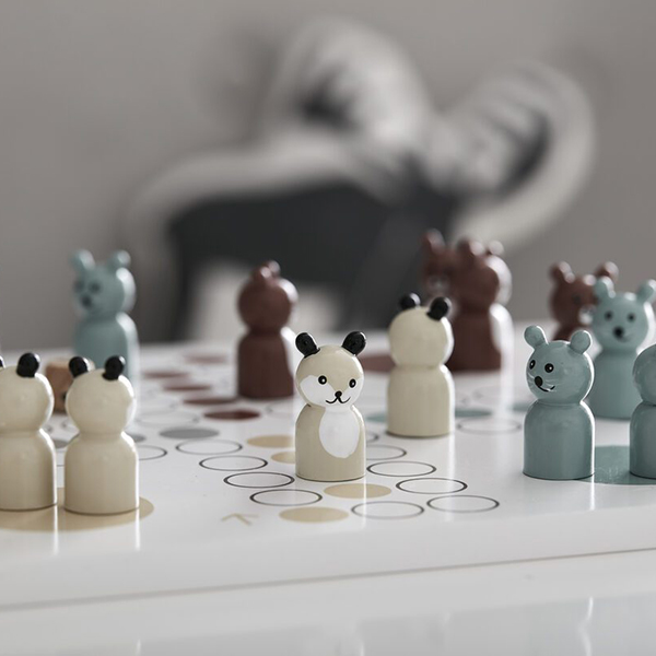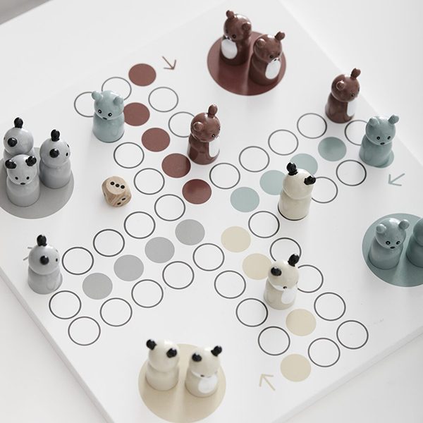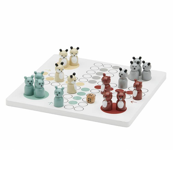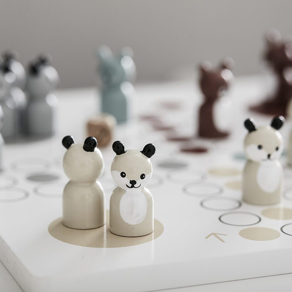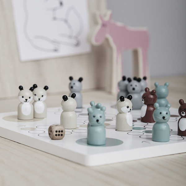 Επιλέγετε ανάμεσα σε τέσσερις διαφορετικές ξύλινες φιγούρες και τη γωνία εκκίνησης. Όλα τα πιόνια μοιάζουν με ζωάκια του δάσους.