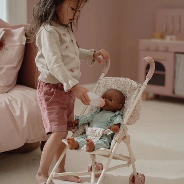 Το μεταλλικό καρότσι για κούκλες με λευκό σκελετό, ροζ λαβές και 4 ροζ ρόδες έχει σχεδιαστεί για να προάγει το ευφάνταστο παιχνίδι και να καλλιεργεί την αίσθηση ευθύνης για τους μικρούς 'κηδεμόνες'. Μπορεί να διπλωθεί εύκολα, κάνοντας την αποθήκευση παιχνιδάκι.