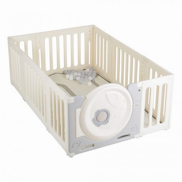 Το χαλάκι τοποθετείται στο παρκοκρέβατο για μεγαλύτερη ευκολία. Η πόρτα διαθέτει μηχανισμό κλειδώματος.