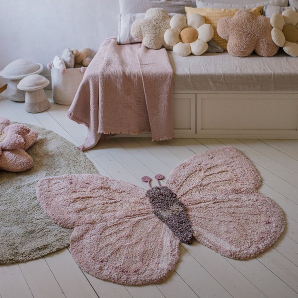 Απολαυστικό στην αφή με τα διαφορετικά ύψη πέλους, αυτό το χαλί είναι κατασκευασμένο από συνολικά οκτώ αποχρώσεις απαλού ροζ και ροδακινί που συνδυάζονται μεταξύ τους για να δημιουργήσουν μια πιο ρεαλιστική και πανέμορφη πεταλούδα!