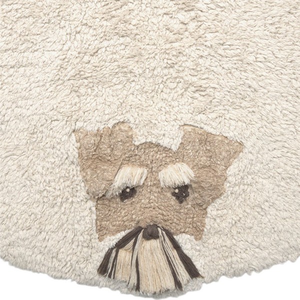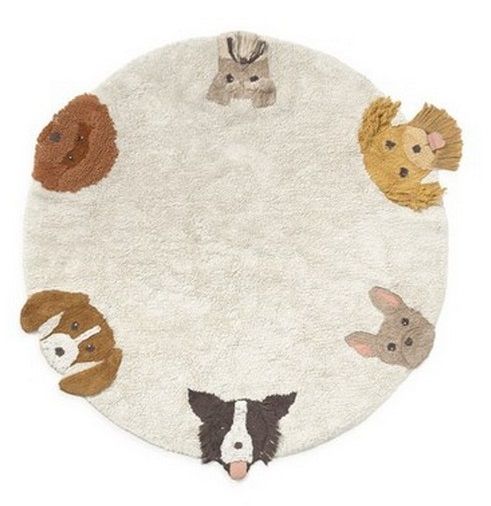Φέρτε χαρά στην ώρα του παιχνιδιού με αυτό το υπέροχο στρογγυλό βαμβακερό χαλί σε φυσική απόχρωση, που παρουσιάζει τα χαριτωμένα πρόσωπα έξι διαφορετικών σκύλων!