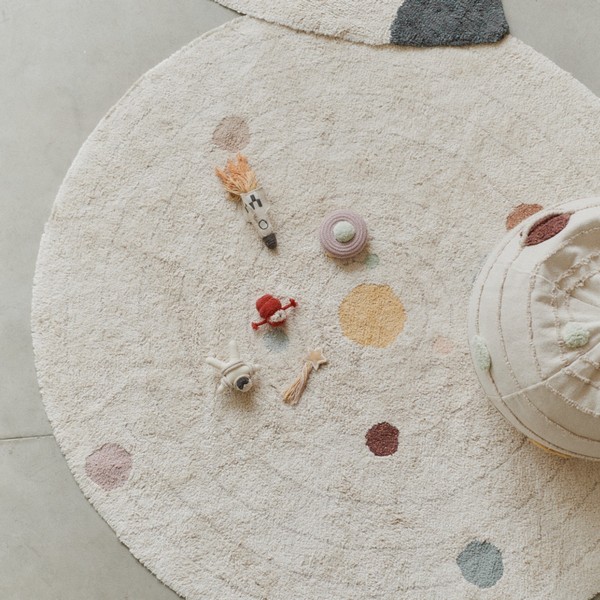 Απογειωθείτε σε έναν γαλαξία γεμάτο διασκέδαση με το πλενόμενο χαλί δωματίου Solar System! Αυτό το χειροποίητο χαλί, κατασκευασμένο από φυσικό βαμβάκι, διαθέτει λεπτές γκρι ρίγες που μιμούνται τις πλανητικές τροχιές - φέρνοντας τα θαύματα του διαστήματος κατευθείαν στο σπίτι σας.