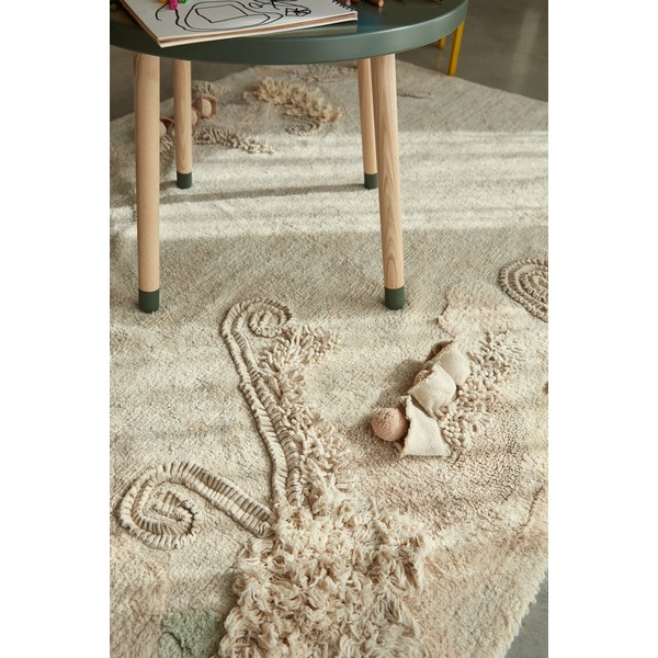 Σε απαλές φυσικές και παστέλ αποχρώσεις, ο βυθός του ωκεανού αναπαρίσταται από σημεία με διαφορετικές υφές που θα εξάψουν τη φαντασία του μικρού σας.