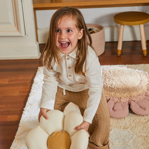 Σε σχήμα ανθισμένου λουλουδιού, διαθέτει υπερ-απαλά πέταλα σε κρεμ χρώμα, που αποπνέουν ζεστασιά, και εσωτερικό κατασκευασμένο από βαμβακερό καμβά σε μελί χρώμα.