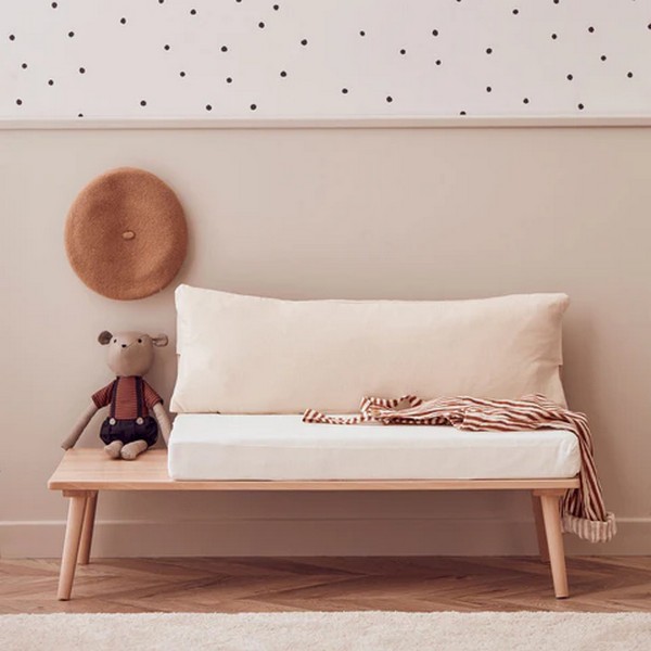 Κατασκευασμένο από πιστοποιημένο FSC ξύλο από ελαφριά οξιά. Τα καλύμματα είναι αφαιρούμενα, από 100% βαμβάκι, και μπορούν να πλυθούν στο πλυντήριο στους 40 βαθμούς, γυρνώντας τα ανάποδα (το μέσα-έξω).